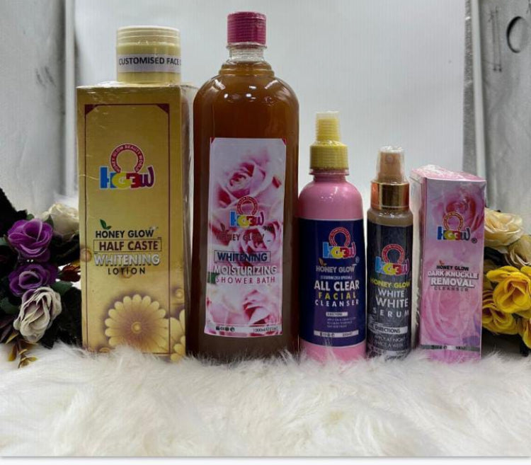 The Half Cast Glow Kit by Honey Glow is an organic full body care set designed to enhance your skin’s natural radiance. This expert-selected collection includes a nourishing body cream, gentle body wash, effective facial cleanser, brightening whitening serum, and targeted dark knuckle cleanser. Each product works synergistically to cleanse, hydrate, and even out skin tone, helping you achieve a smooth, luminous complexion from head to toe. Ideal for those seeking comprehensive skincare with natural ingredients for a balanced and glowing appearance.
